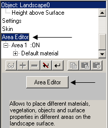 5. В нашем случае необходимо настроить наш готовый ландшафт. Для этого выделяем объект LandScape0 и редактируем его параметр AreaEditor.