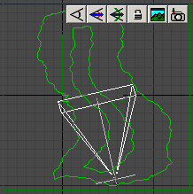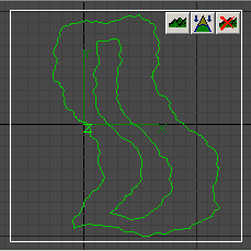 2. Теперь начинается самое интересное этих двух линий уже достаточно для генерации вполне приличного ландшафта. Компьютер сам просчитывает путь от точек первой кривой до точек второй кривой. Для реализации достаточно лишь снова зайти в меню Create и выбрать пункт LandScape. После этого появится квадрат вокруг нарисованных нами кривых и три новых кнопки на панели. Кнопки реализуют три действия: создать ландшафт, сгладить ландшафт и отменить создание ландшафта. Перед началом создания ландшафта убедитесь, что ваши кривые находятся внутри квадрата. Если необходимо переместите его или увеличьте.