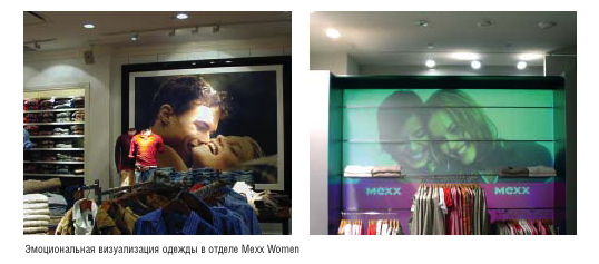 Далее с помощью видеонаблюдения изучали поведение покупателей и, в частности, процесс выбора направления — в сторону Mexx или в сторону другого отдела (он длится несколько миллисекунд и происходит большей частью подсознательно).