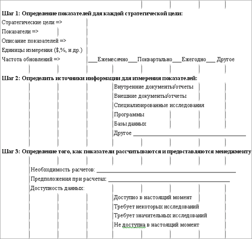 Данный проверочный лист может быть использован как руководство по определению целевых значений показателей