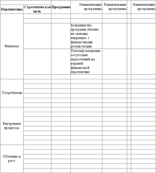 При анализе разрывов мы выявляем программы, которые не способствуют достижению стратегических целей, и стратегические цели, достижение которых не поддержаны программами. Следующий лист представит инструмент для такого анализа.