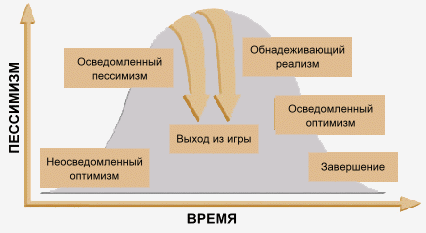 Если эту стадию удастся миновать, мы войдем в стадию «обнадеживающего реализма», позволяющего увидеть «свет в конце туннеля», основываясь на понимании, как цены, так и получаемой пользы. Затем наступает стадия «осведомленного оптимизма» — ощущения, что перемены досягаемы и многое уже сделано. И, в конце концов, наступает момент, когда перемены можно считать завершенными.