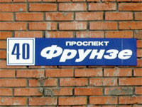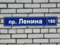 решение — в примере справа. <Проспект> выполняет роль второстепенную, что выразилось в меньшем шрифте. Название улицы (проспекта) и номер дома в этом случае показаны равнозначными посредством контраста цветов. Адрес хорошо считывается на большом расстоянии.