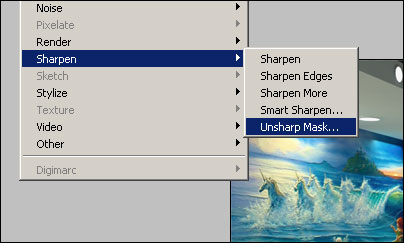 Лезем в фильтры фотошопа и выбираем фильтр Unsharp mask.