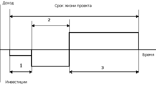 2 — инвестиционная фаза; 3 — эксплуатационная фаза)