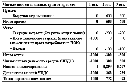 эффективности проекта определяется как сумма денежных потоков проекта, без учета