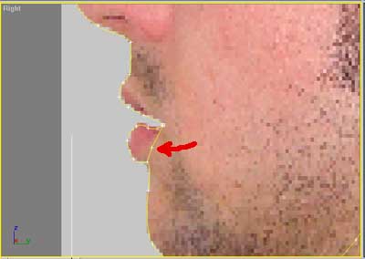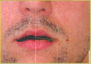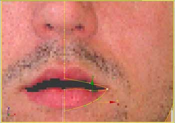 Не выходя из Modify в свитке Geometry нажимаем кнопочку Create Line, нажимаем клавишу «s» для активизации привязки к вертексам и создаем кривую из угла рта к нижнему вертексу нижней губы —