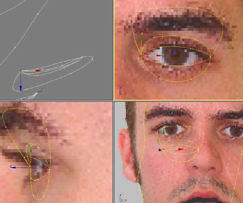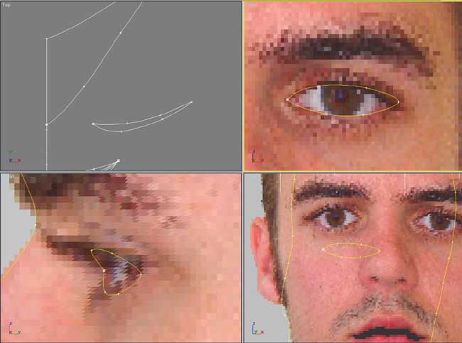 Естественно, что мы моделим только одну половину лица. В последствии мы зеркально отобразим ее и склеим половинки. Теперь приступим к рисованию глаза. 18. Создаем первую кривую. Когда последняя вершина ляжет на первую, Мах задаст вопрос — отвечаем «нет» и щелкаем правой кнопкой мыши, чтобы закончить кривую. Далее увеличивая зум в окне Front, совмещаем первую и последнюю вершины до их полного совпадения. На задаваемые вопросы программы, отвечаем — «нет». Должно получиться примерно так —