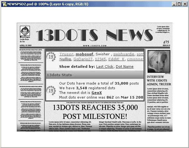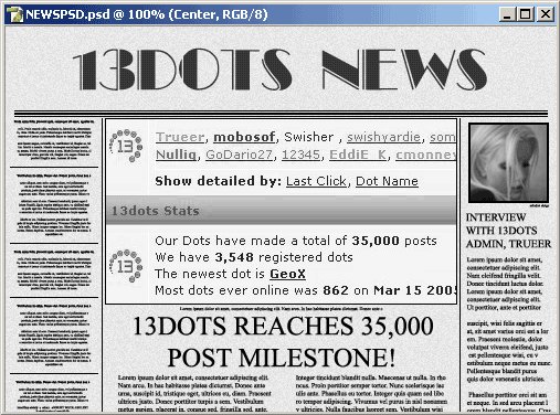 22. Теперь добавим название нашей газеты. Пример: «13DOTS NEWS».