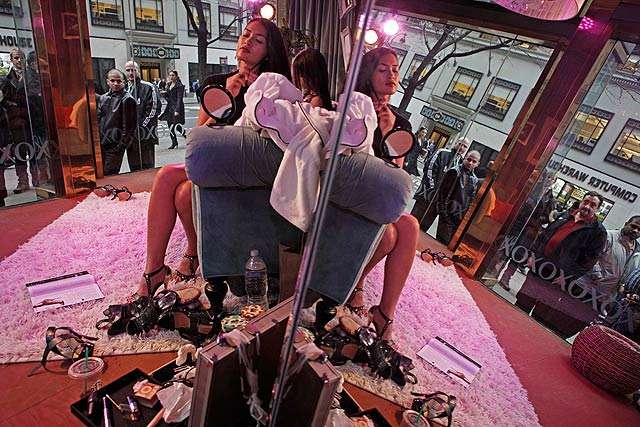 Торговая марка одежды для женщин XOXO в Нью-Йорке применили следующий маркетинговый трюк: за стеклом витрины создали интерьер квартиры и поместили в нее двух привлекательных девушек-моделей. Молодые женщины жили за стеклом, на радость любопытным прохожим, обычной жизнью — переодевались в новые наряды, красили губы и ногти, листали глянцевые журналы. Руководитель этой рекламной кампании Carol Powley назвал это реалити-шоу «window theater». Разумеется, такие маркетинговые ходы напоминают несколько другие сцены из жизни, но цель достигнута, а значит создание такой рекламы было оправдано.