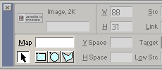 A: По всей видимости речь идет об Image Map. То есть о наложении активных областей-ссылок на части картинки. В DreamWeaver это делается вот на этой панели: