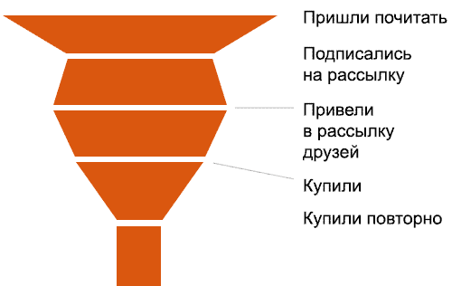 Рассылка — как раз инструмент удержания. Вот как выглядит воронка с рассылкой: