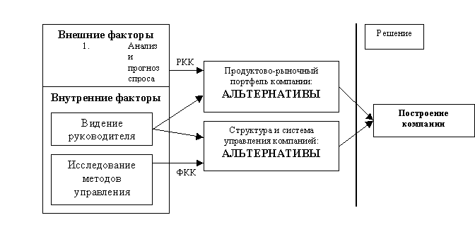 На основе ФКК и видения руководителя вырабатываются альтернативы структуры и системы управления компанией.