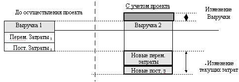 Важно выделить затраты, которые будут увеличиваться именно в связи с реализацией проекта. Например, предприятие, рассматривающее проект снижения затрат (строительство ТЭЦ), одновременно планирует увеличить текущие затраты на рекламу своей продукции. При оценке эффективности проекта строительства ТЭЦ рост затрат на рекламу продукции не должен рассматриваться, так как он никак не связан с инвестированием средств на возведение ТЭЦ. То есть, рост затрат на рекламу продукции не должен влиять на показатели эффективности проекта строительства ТЭЦ. Рост затрат на рекламу должен учитываться в потоках предприятия при оценке финансовой состоятельности проекта.