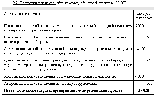 - Рассмотреть изменения затрат, связанных с инвестиционным проектом, по всему предприятию.