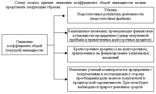 Снижение коэффициента ликвидности может означать, что возможности предприятия по погашению обязательств начинают снижаться. Необходимо определить причины ухудшения ситуации и варианты ее оптимизации.