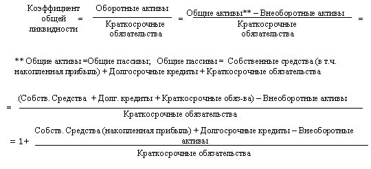 атематических доказательств можно предложить изменить формулу расчета коэффициента ликвидности и таким образом выделить факторы, определяющие его величину. Преобразованная формула отражает собственные средства (заработанная прибыль), внеоборотные активы (в их числе капитальные вложения) и долгосрочные кредиты, которые в идеале не должны привлекаться на финансирование оборотных активов.