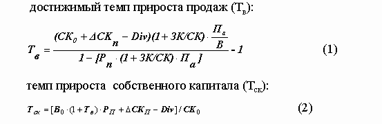 Одновременно эта модель позволяет находить тот уровень параметров финансовой стратегии, которые обеспечивают заданный рост продаж, собственного капитала и безопасные границы финансового левериджа.