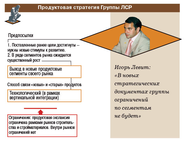 По словам Игоря Левита, "есть сегменты, в которых ЛСР пока чувствует себя неуютно". В частности, освоив производство сухих строительных смесей и выйдя с ними на розничный рынок, компания не заняла там существенной доли, как это происходило в других нишах. "Мы поняли, что выпуск строительных товаров, которые продвигаются через дилерские сети и продаются в магазинах, — не совсем наш бизнес, — поясняет топ-менеджер ЛСР. — Мы сильны в производстве стройматериалов, которые поставляются напрямую строителям".