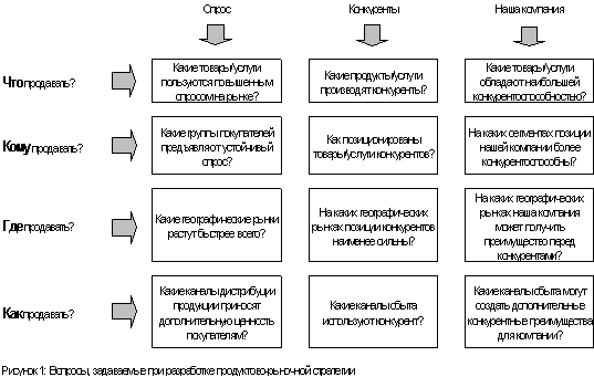 Вопросы "Что продавать?", "Кому продавать?", "Где продавать?" и "Как продавать?" являются для компаний принципиальными. Потому что все прочие вопросы — организация производства, инновационный процесс, построение системы управления — вытекают из них.