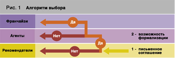 В случае использования схемы сервисного франчайзинга головное предприятие, помимо права использования фирменного наименования (знака, торговой марки), передает франчайзи саму технологию оказания услуги. То есть этот подход развивает идею агентского соглашения. Франчайзи, являясь изначально юридически независимым предприятием, становится <клоном> головной компании. Последняя, в свою очередь, по договору франчайзинга (коммерческой концессии) получает право контролировать работу франчайзи в плоскости, касающейся соответствия установленным технологиям и процедурам.