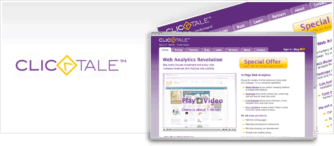 ClickTale позиционирует себя как инструмент для “in-page” аналитики (в противовес другим платформам, которые делают акцент на трекинге перемещения между страницами). ClickTale по функциональности похож на Crazy Egg за тем исключением, что может фиксировать не только клики, но и перемещения мыши. Вот как можно использовать ClickTale: