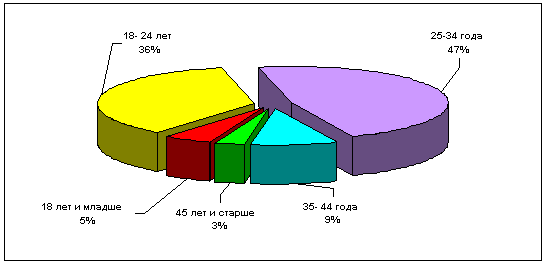 исследователи российской интернет-аудитории уже отмечали, что с течением времени Рунет <взрослеет> вместе с теми, кто 5-8 лет назад начинал его освоение. Здесь мы видим отчетливый возрастной рубеж <поклонников жанра> — 35 лет. Обращает на себя внимание тот факт, что возможности электронной коммерции современного интернета привлекает людей в возрасте старше 45 лет, среди которых активных покупателей в интернете даже больше, чем среди более молодых групп посетителей сетевых магазинов (76,5% из группы 45 лет и более имеют опыт покупок в Сети).