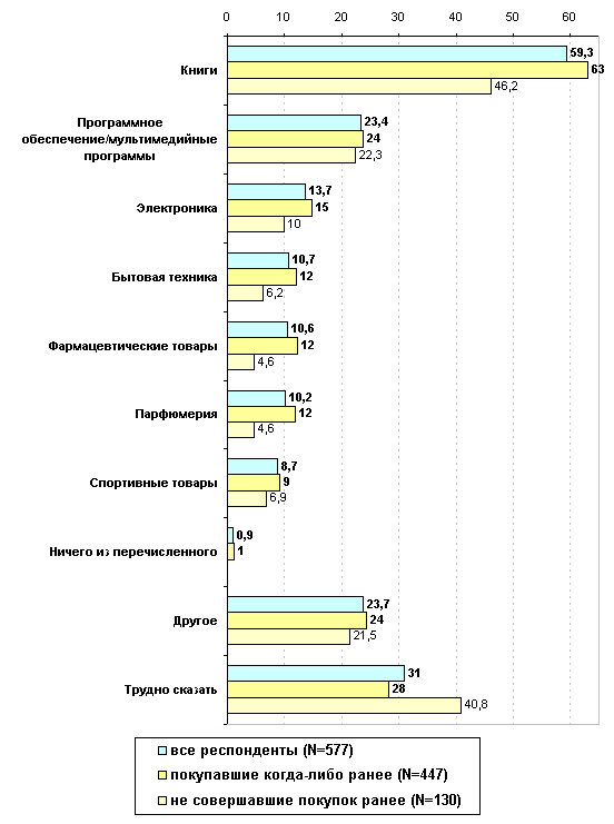 Несколько слов о методике. исследование проводилось с использованием метода web-опроса. На сайтах сетевых магазинов вывешивалось приглашение принять участие в исследовании, адресованное посетителям магазинов. приглашение располагалось на стартовой странице при входе в интернет-магазин и на странице заказа товара, сама анкета располагалась на корпоративном сайте Gallup SPb (www.gallup.spb.ru). В исследовании приняло участие 577 респондентов.